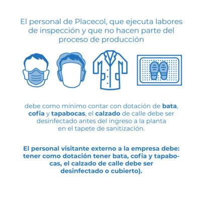 - La dotación es suministrada por Placecol en los tiempos establecidos; es de uso obligatorio y sus condiciones son:
