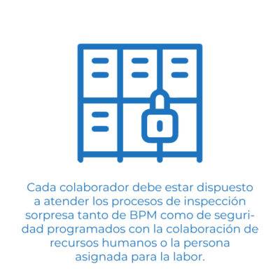 Las condiciones de utilización de los vestieres y casilleros dispuestos para guardar los objetos personales de los colaboradores de producción.