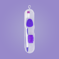 Práctico kit odontológico K154 portable que contiene cepillo, seda y protector de filamentos para que puedas lavar y enjuagar tus dientes donde quieras. Incluye porta cepillo plástico.
