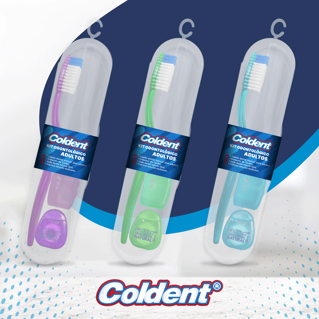 Práctico, completo y siempre listo para acompañarte donde vayas. El Kit para adultos K155 de Coldent® reúne todo lo necesario para mantener tu higiene oral en cualquier momento y lugar, brindándote comodidad, protección y una experiencia de cuidado confiable.